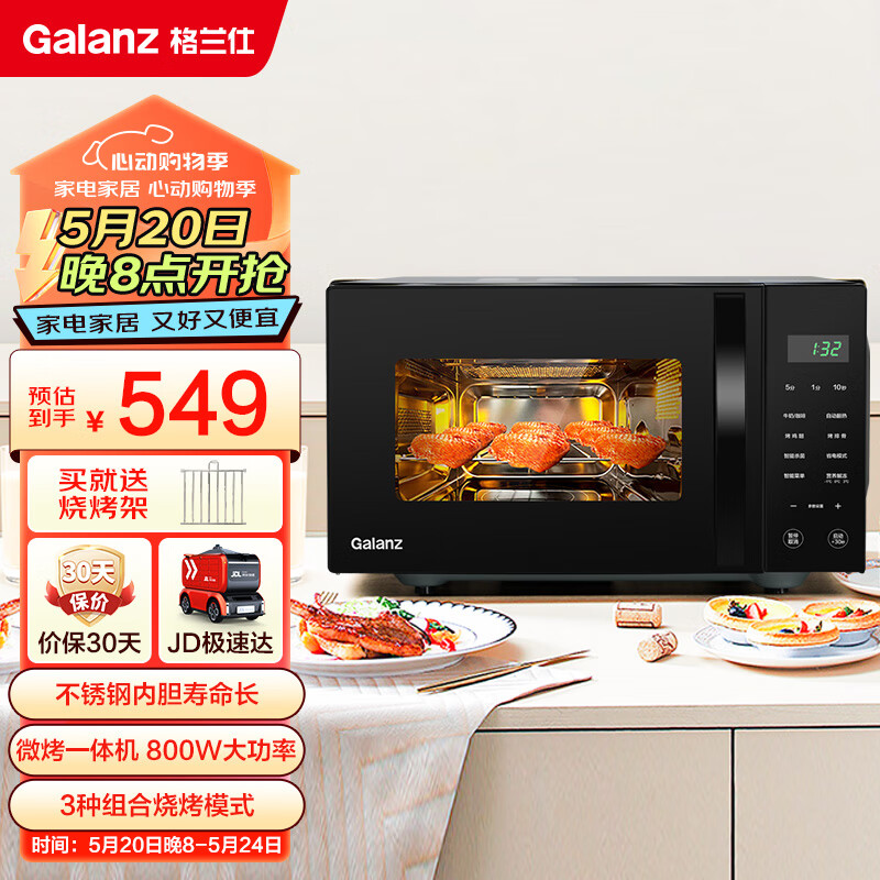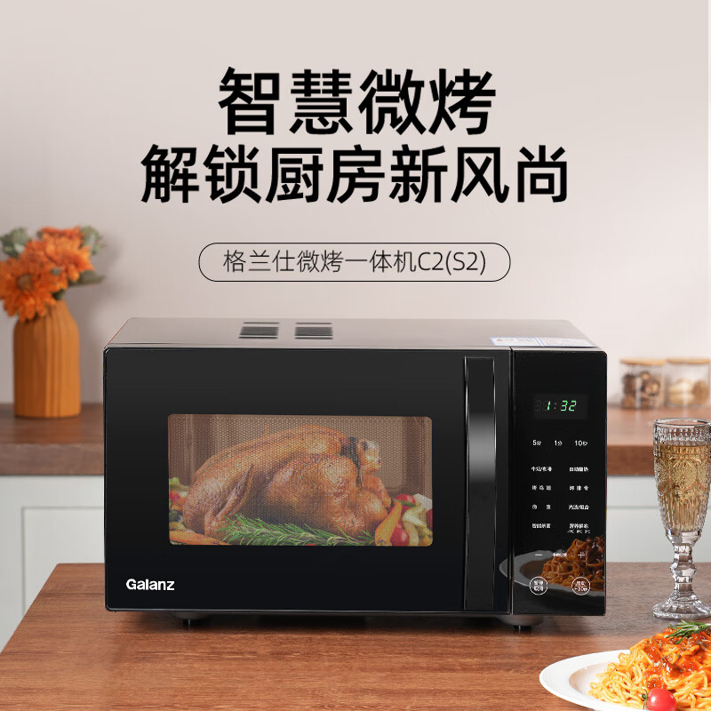 格兰仕(Galanz)不锈钢微波炉烤箱一体机800W大功率速热光波炉家用23L平板易清洁C2(S2)价格:549.00元!