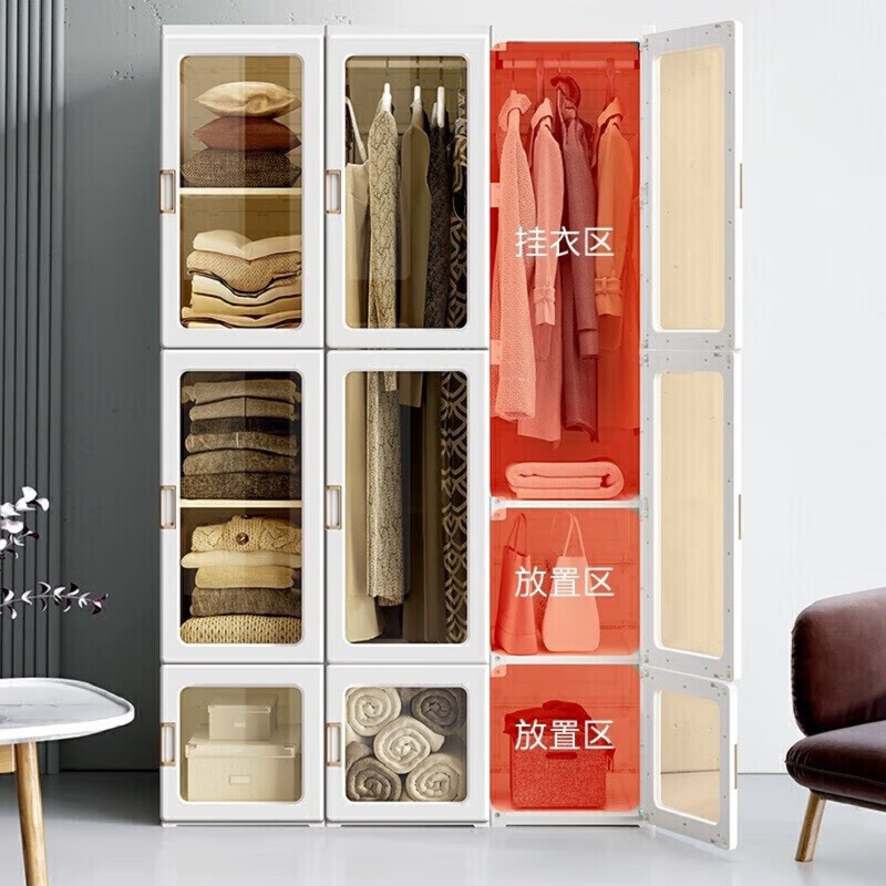 蚂蚁盒子(MAYIHEZI)免安装可折叠塑料成人简易衣柜出租房衣服收纳防尘防潮 8格6门1挂价格:479.00元!