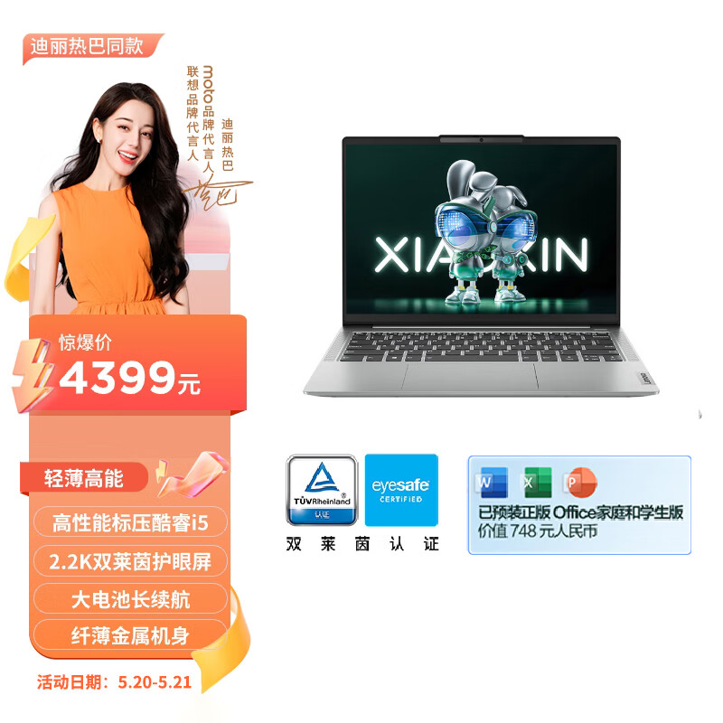 联想笔记本电脑小新14超薄本 高性能标压酷睿i5 14英寸轻薄本 16G 1T 2.2K护眼屏 灰 办公学生商务价格:4399.00元!
