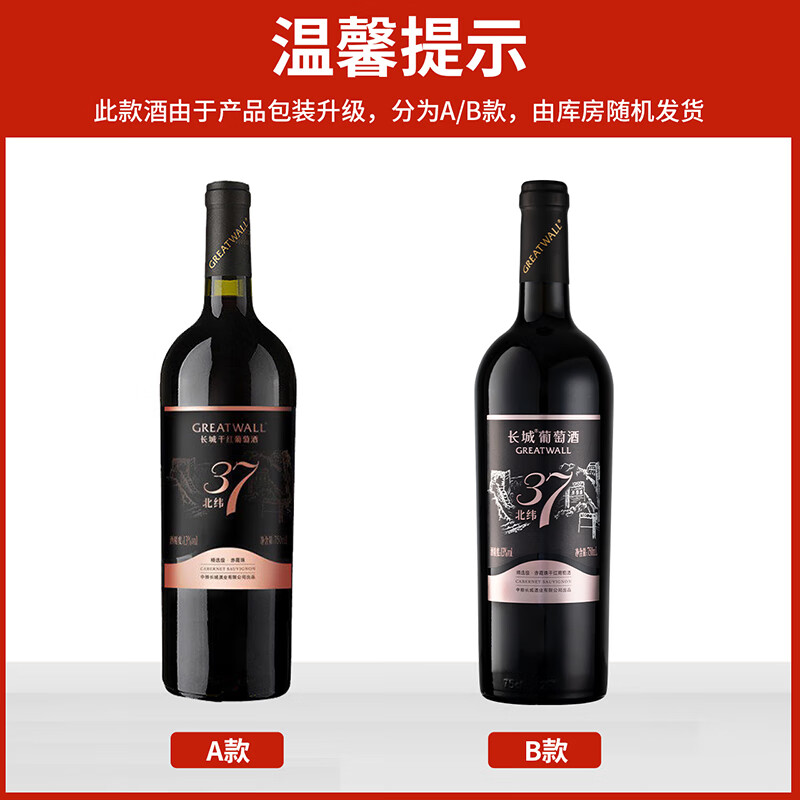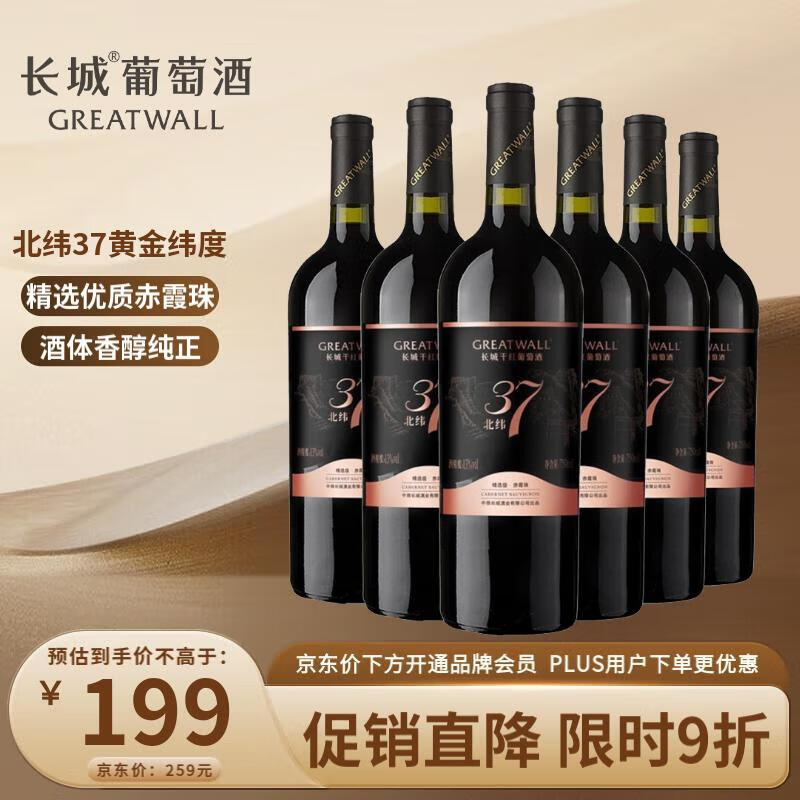 长城 北纬37精选级赤霞珠干红葡萄酒750ml*6瓶 整箱装价格:229.00元!