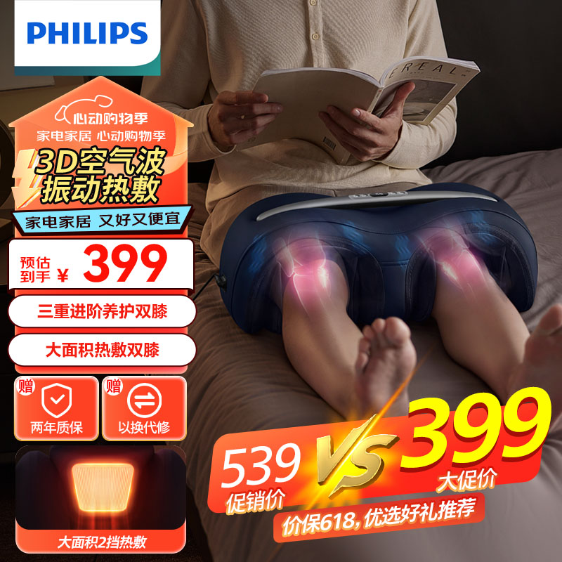 飞利浦(PHILIPS)膝盖按摩器3D空气波热敷震动膝盖进阶养护保暖家用多功能一机多用按摩器足疗机送长辈礼品5401L价格:549.00元!