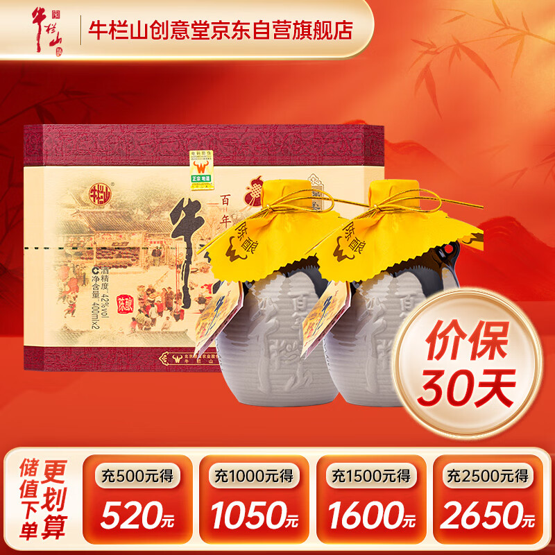 牛栏山百年陈酿三牛 绵柔小批量 浓香型白酒 42度400ml*2瓶 礼盒装价格:292.00元!
