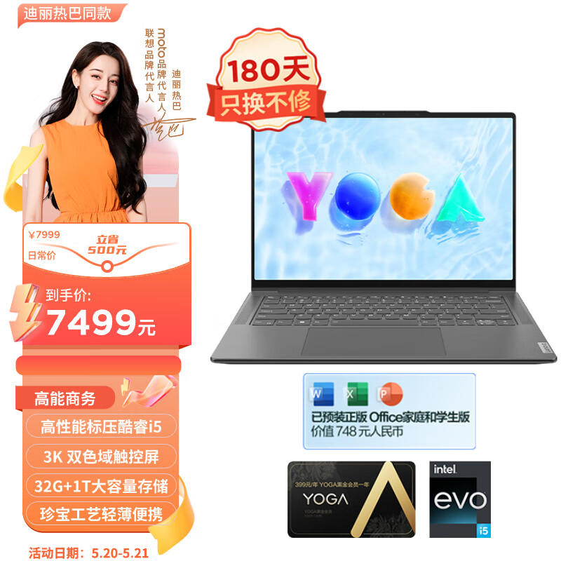 联想笔记本电脑YOGAPro14s高能触控本 高性能标压酷睿i5 14.5英寸轻薄本32G 1T 3K高刷屏灰 商务设计师价格:7499.00元!