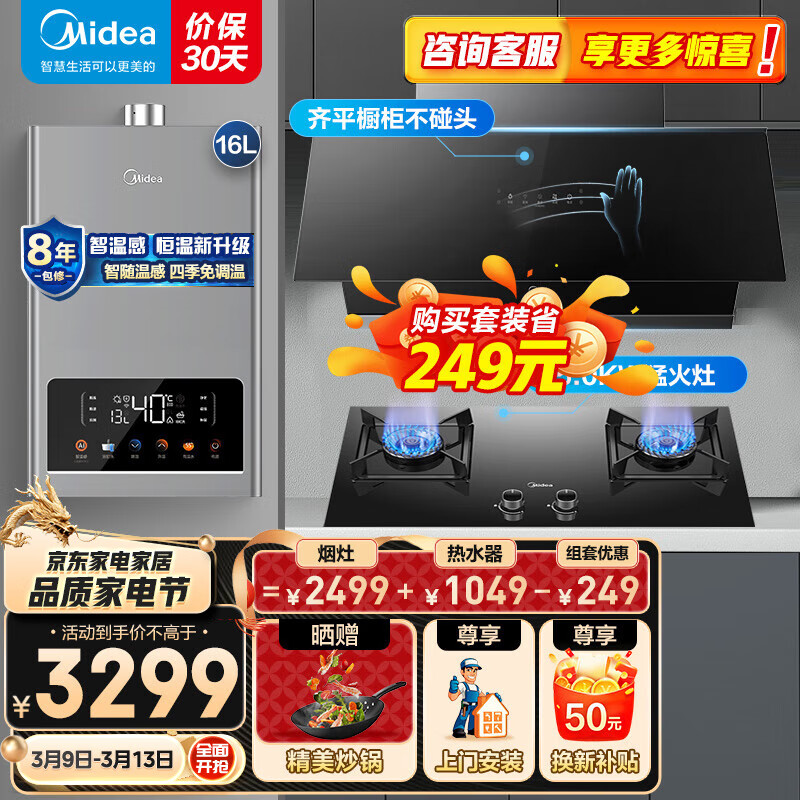 美的(Midea)侧吸抽油烟机灶具烟灶多件套装燃气热水器家用烟灶燃热厨房三件套J37+Q330+16TC5S天然气价格:3299.00元!