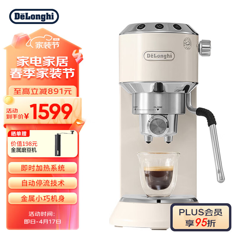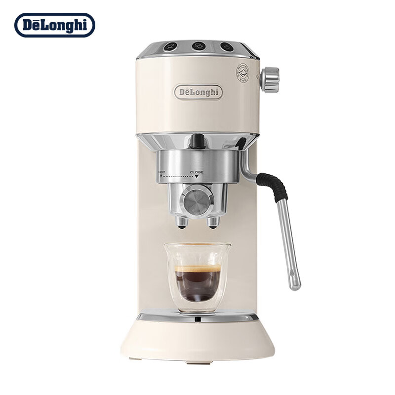 德龙(Delonghi)咖啡机 半自动咖啡机 意式浓缩 家用 泵压式 EC885.CR 奶油色价格:1599.00元!