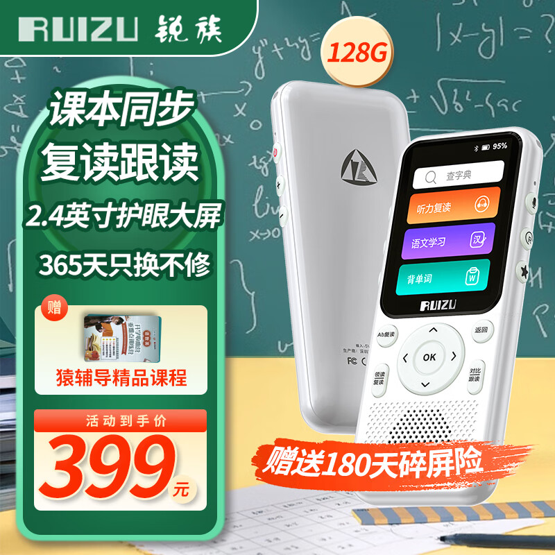 锐族V05Pro英语学习机听力宝单词记背mp3随身听复读机 儿童小学初中高中考研神器礼物 同步教材128GB价格:510.00元!