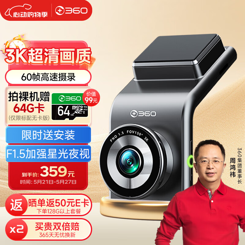360AI行车记录仪 G300 3K升级版 3K超高清星光夜视 车载语音控制录像价格:369.00元!