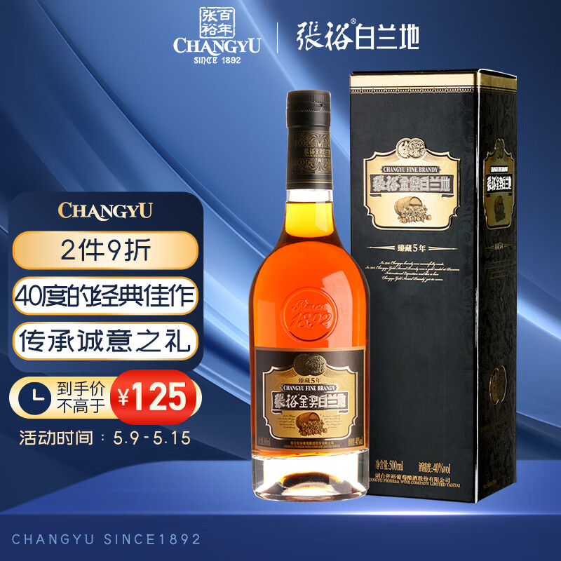 张裕 臻藏5年 金奖白兰地500ml 单支装 洋酒礼盒送礼价格:125.00元!