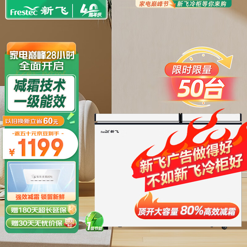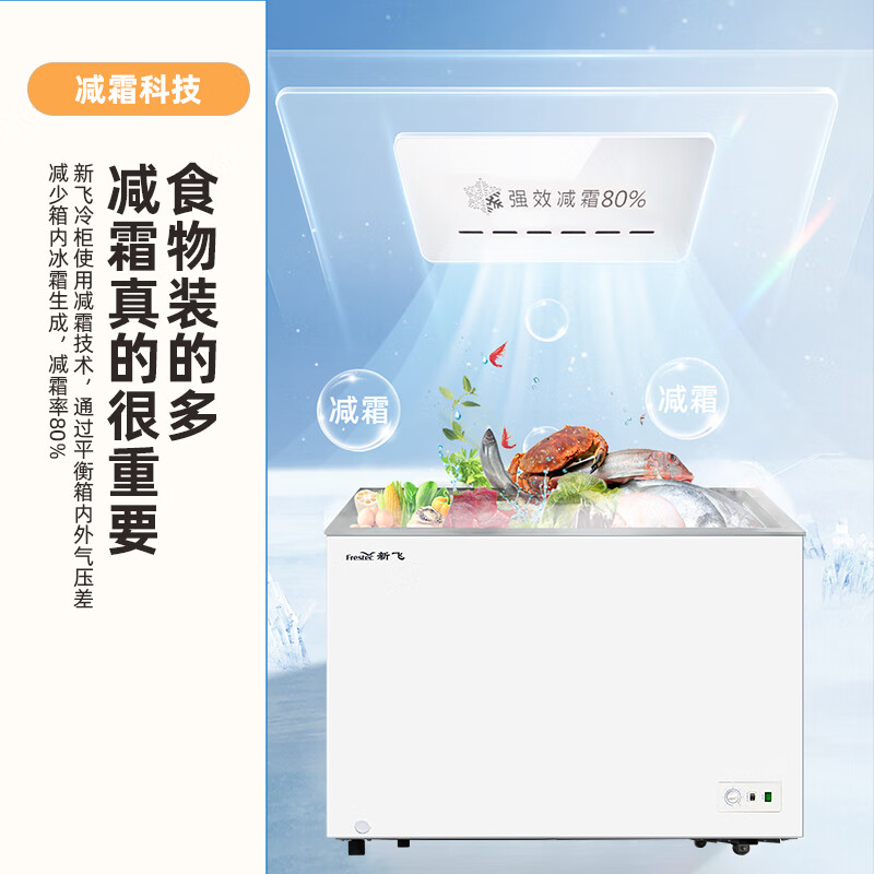 新飞(Frestec)298升减霜双温双箱冰柜 大冷冻小冷藏 卧式冰箱 大容积商用顶开门冷柜 BCD-298KAT价格:1299.00元!
