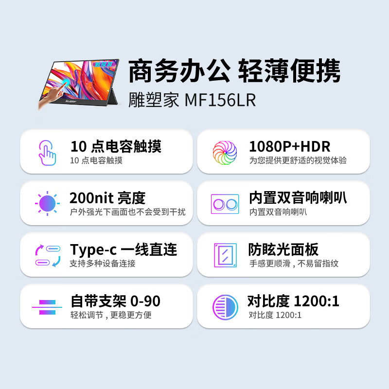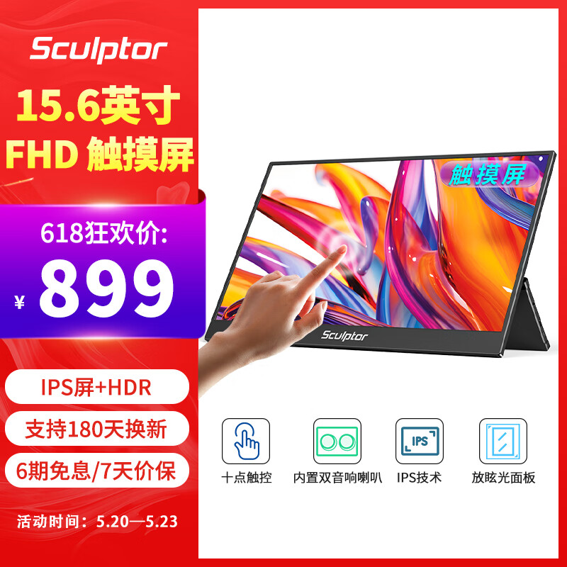 雕塑家15.6英寸便携式显示器FHD触摸电脑显示副屏双Type-C一线通笔记本switch PS4/5拓展屏价格:949.00元!