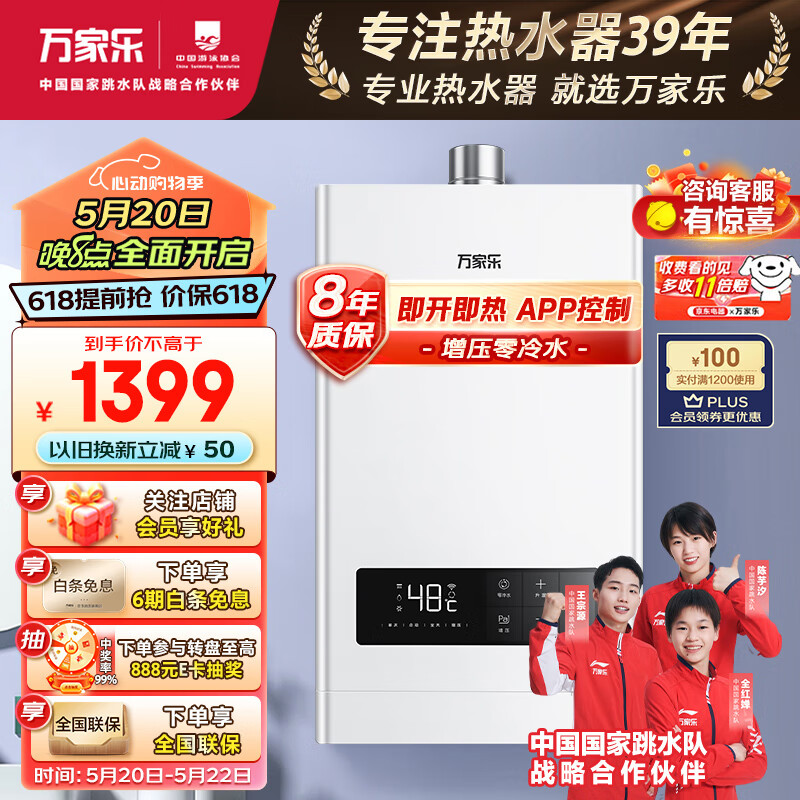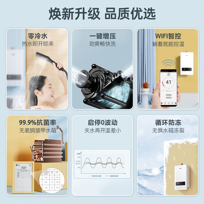 万家乐 13升燃气热水器增压零冷水天然气WIFI智控启停微波动恒温循环防冻JSQ26-13RL0【佛山标准产品】价格:1499.00元!
