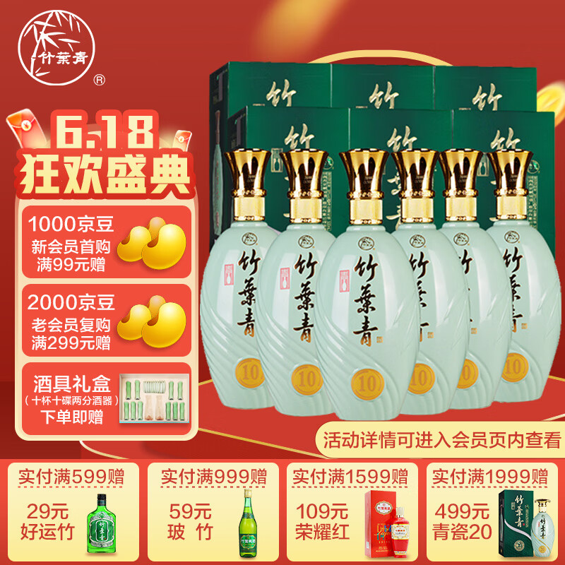 竹叶青酒 山西杏花村汾酒 露酒 青瓷10版 38度500ml*6瓶 箱装【送礼】价格:1498.00元!