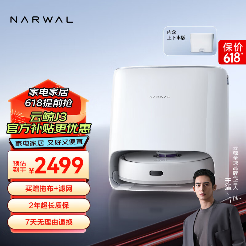 云鲸扫地机器人扫拖洗烘一体机 扫地机擦地机拖地机器人 自清洁智能换水 云鲸J3小鲸灵上下水版价格:2499.00元!