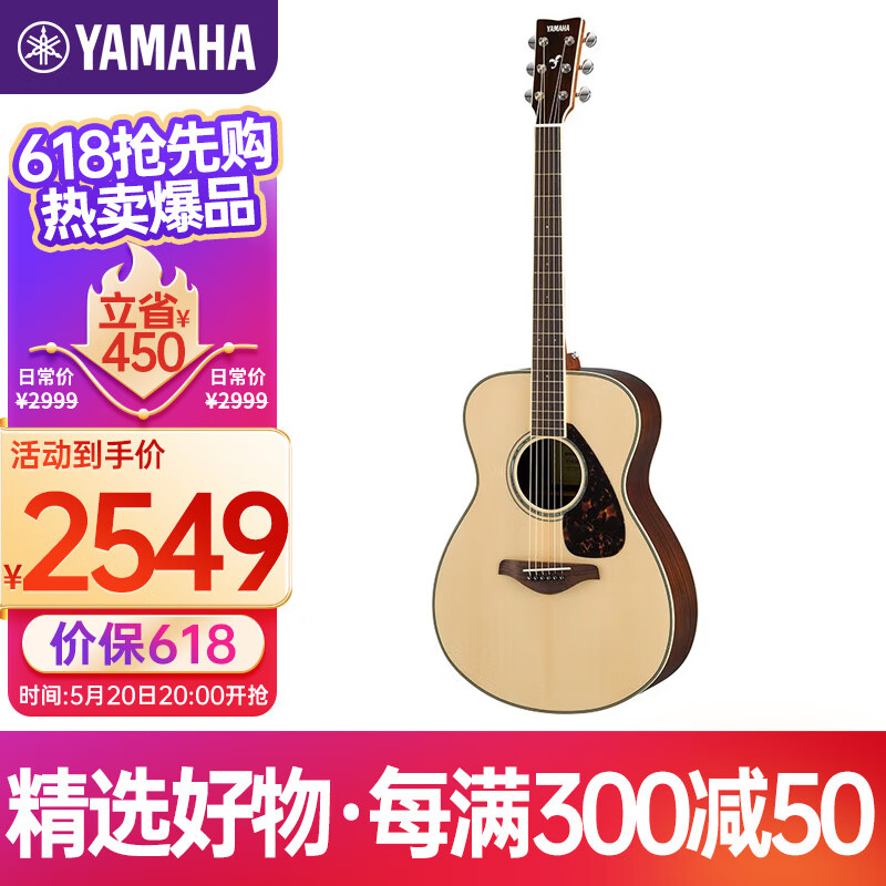 雅马哈(YAMAHA)FS830 原声款 实木单板 初学者民谣吉他40英寸吉它亮光原木色价格:2999.00元!
