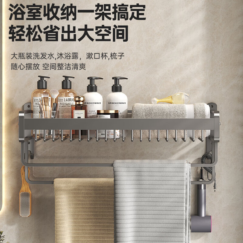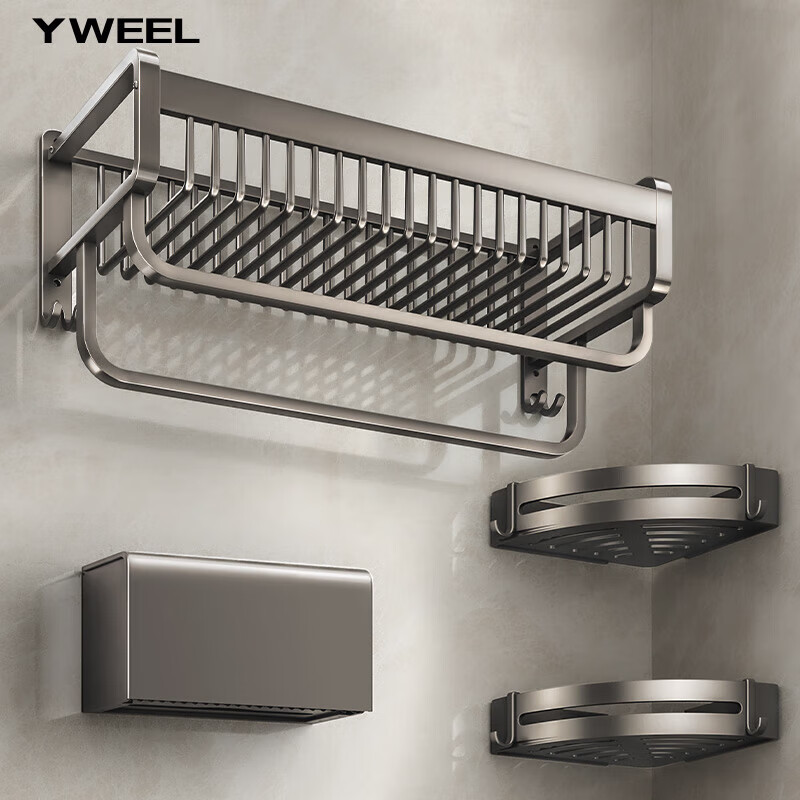 YWEEL毛巾架免打孔卫生间置物架浴室太空铝浴巾架卫浴挂件套装价格:118.00元!