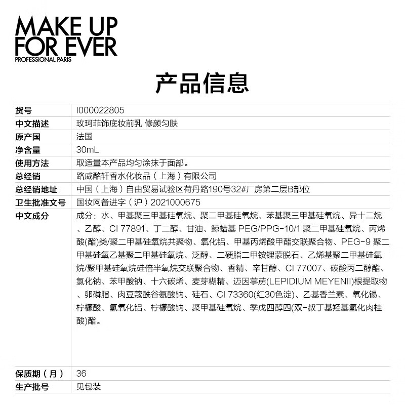玫珂菲(MAKE UP FOR EVER)熬夜粉底液遮瑕持久不脱妆+提亮肤色隔离妆前乳情人节礼物送女友价格:617.00元!