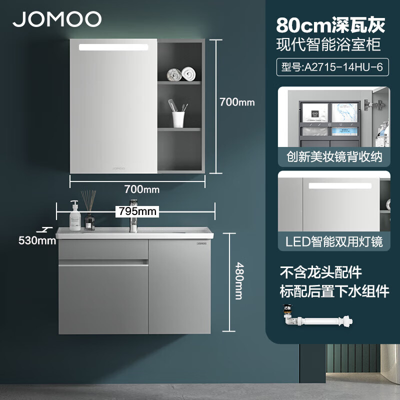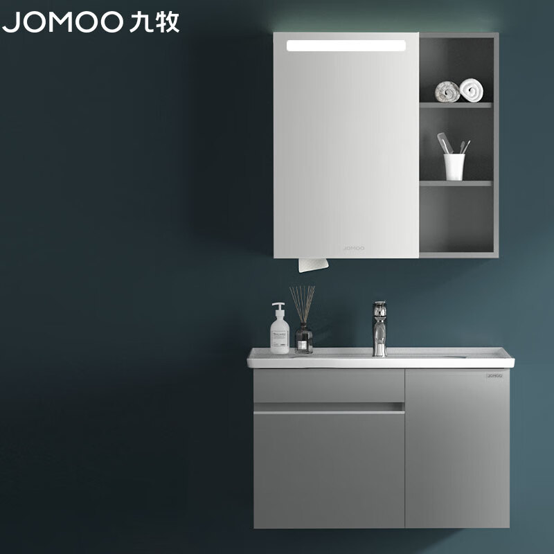 九牧(JOMOO)极简浴室柜陶瓷一体盆洗大收纳智能灯镜柜组合80cm A2715-14HU-6价格:2749.00元!