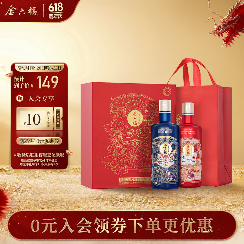 金六福 喜悦礼盒 50.8度 500ml*2瓶 礼盒装 浓清兼香型白酒【婚宴用酒】价格:149.00元!