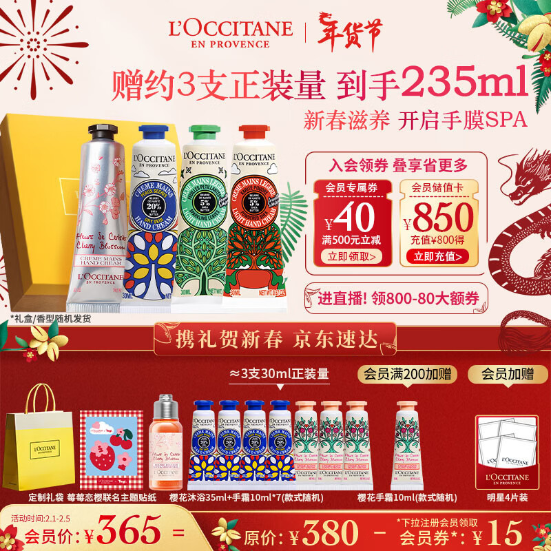 欧舒丹限定4支护手霜套装礼盒滋润保湿易吸收送男女友手部护理新年礼物价格:380.00元!