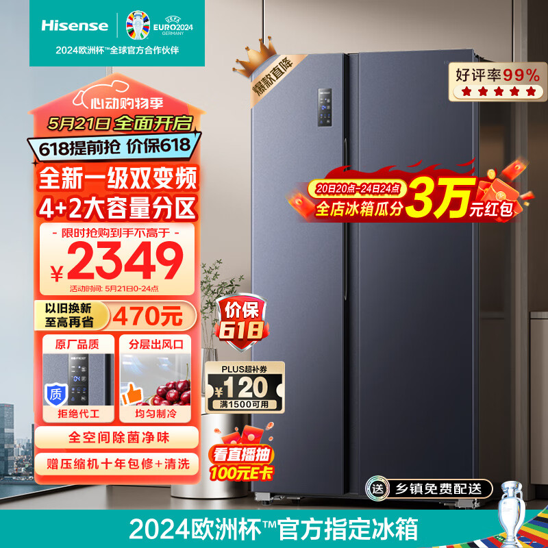 海信(Hisense)电冰箱双开门家用超薄嵌入式无霜冰箱一级能效超大容量611L变频除菌净味BCD-611WFK1DPQ价格:2549.00元!