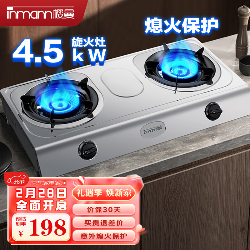 樱曼 燃气灶 煤气灶 家用台式双灶 4.5KW 大火力猛火爆炒不锈钢炉具 JZY-A248(液化气)价格:198.00元!