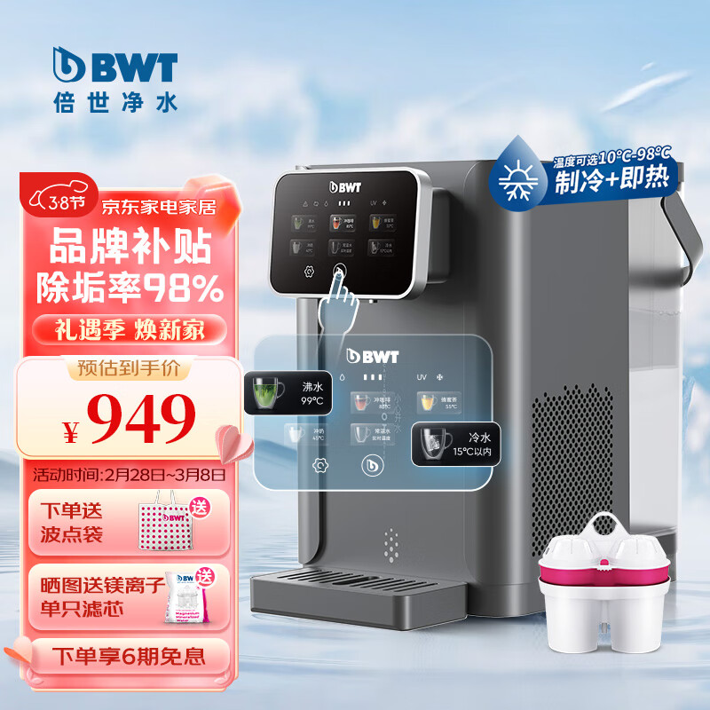 倍世(BWT)制冷即热饮水机家用桌面台式小型UV杀菌进口镁离子过滤冷热净水器直饮净水一体机 A1冷热净饮机(深空灰)价格:1199.00元!