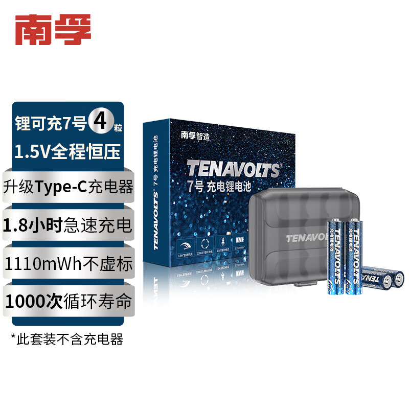 南孚7号充电锂电池4粒 1.5V恒压快充 TENAVOLTS 适用闪光灯/手柄/吸奶器/鼠标/话筒等 AAA七号价格:118.98元!