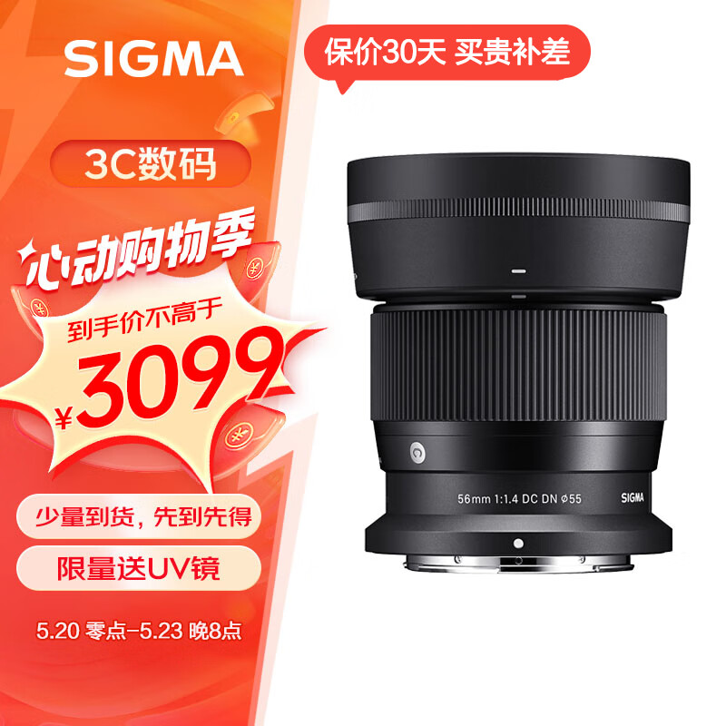 适马(SIGMA)56mm F1.4 DC DN|Contemporary 半画幅 大光圈定焦镜头 人像肖像特写(尼康Z卡口)价格:3099.00元!