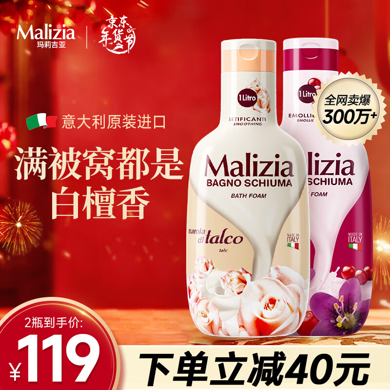 玛莉吉亚(MALIZIA)沐浴露男女通用香味持久1000ml*2套装(木质香+莲花香)原装进口价格:159.00元!