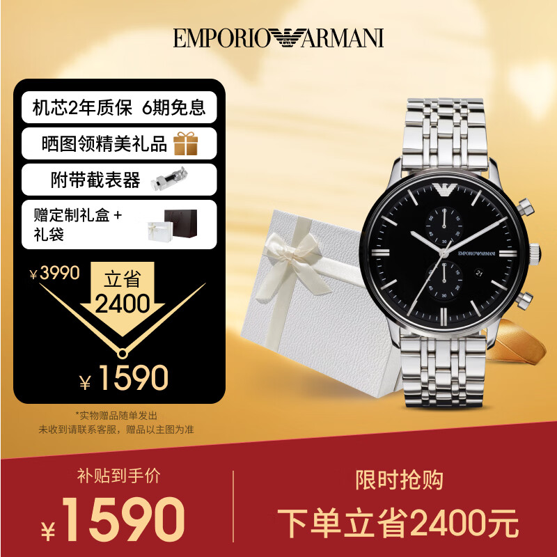 安普里奥·阿玛尼(Emporio Armani)手表男士 经典三针双眼石英商务腕表520情人节礼物送男友AR0389价格:1590.00元!