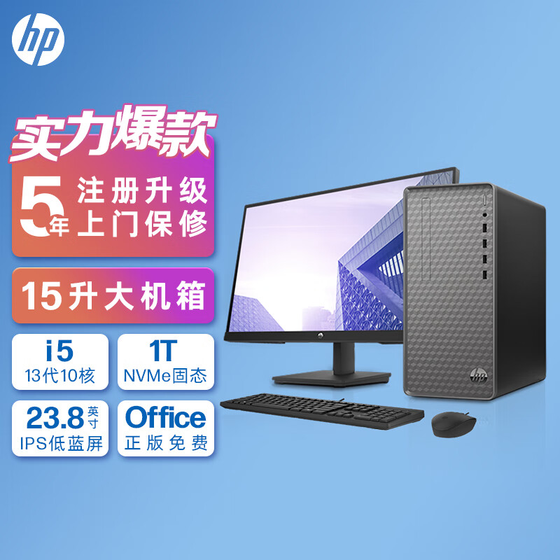 惠普HP 星Box商务办公台式电脑主机15L((13代酷睿i5-13400 16G 1TB固态硬盘 注册五年上门)+23.8英寸价格:3999.00元!