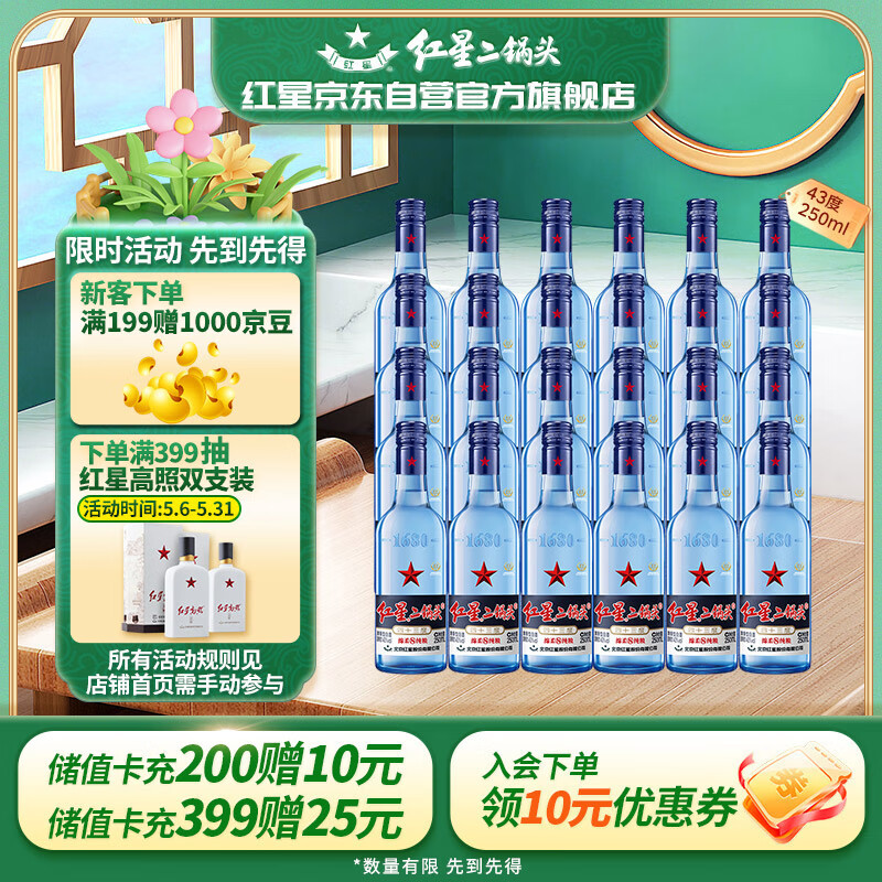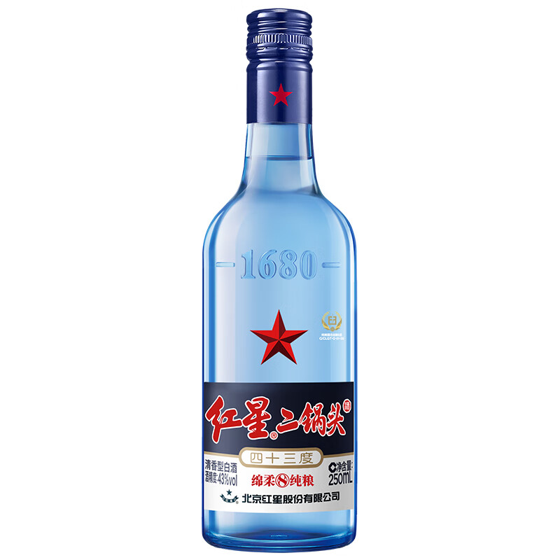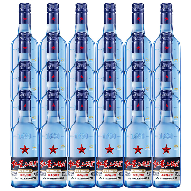 红星二锅头蓝瓶绵柔8陈酿 清香型白酒 43度 250ml*24瓶 整箱装 口粮酒价格:456.00元!
