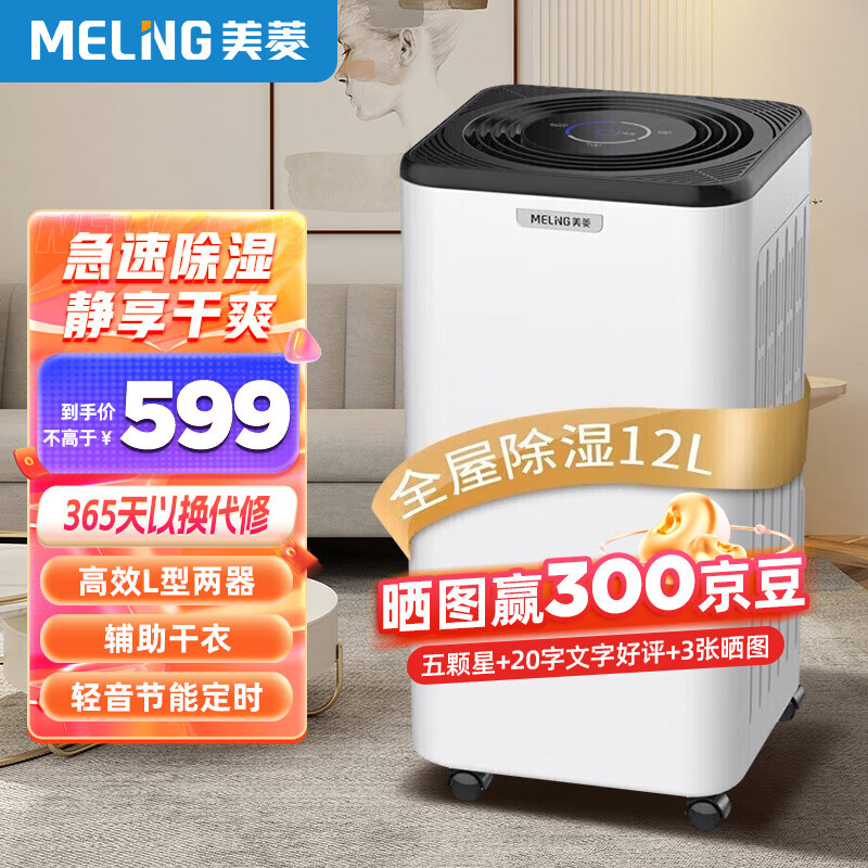 美菱(MeiLing)除湿机/抽湿机 除湿量12升/天 轻音家用吸湿器 卧室地下室干燥机干衣净化 回南天除湿神器MD-16A价格:699.00元!