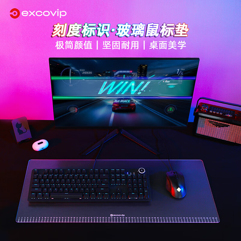 宜适酷(EXCO)刻度透明光伏玻璃鼠标垫大号桌垫70*30cm电竞游戏办公用品京电脑东便携自笔记本营顺滑硬质0170价格:129.00元!