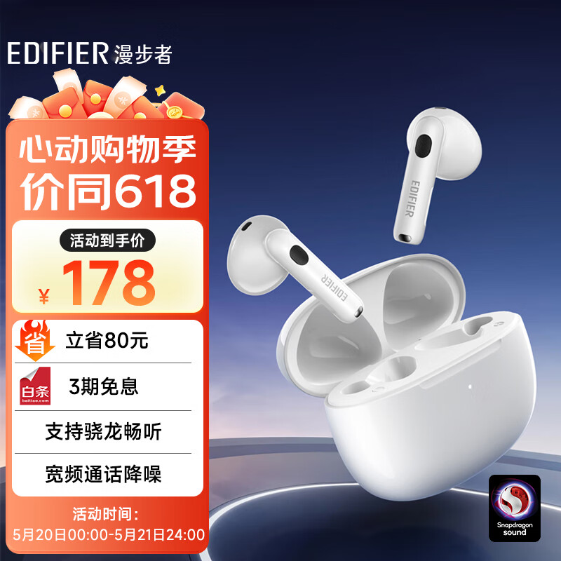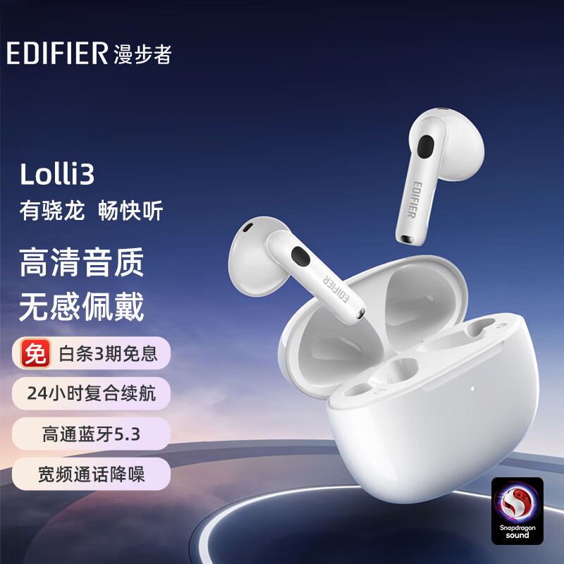 漫步者(EDIFIER)Lolli3 真无线蓝牙耳机 高通蓝牙5.3 适用苹果小米华为手机 七夕情人节礼物 白色价格:178.00元!