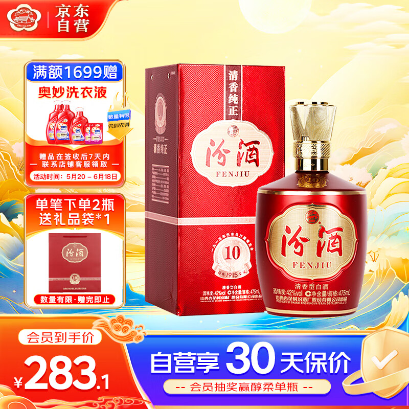 汾酒 1915巴拿马10 清香型白酒 42度 475ml单瓶装 送礼宴请价格:298.00元!