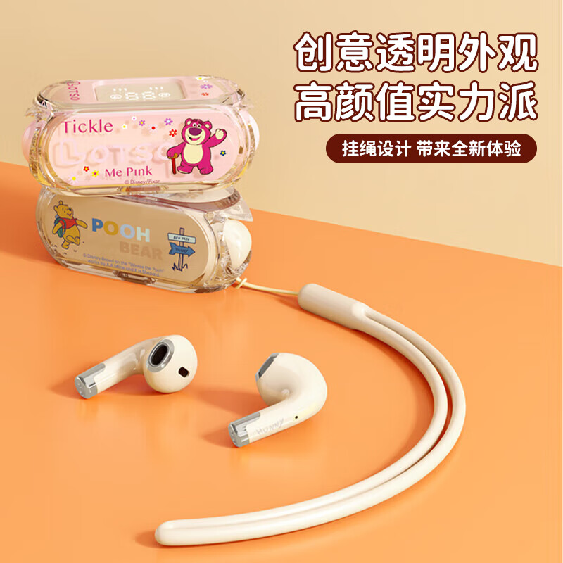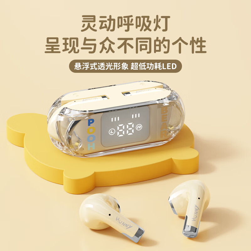迪士尼(DISNEY)J13蓝牙耳机透明真无线半入耳式运动跑步LED数显音乐降噪游戏情侣礼物适用华为苹果【米色维尼】价格:94.00元!