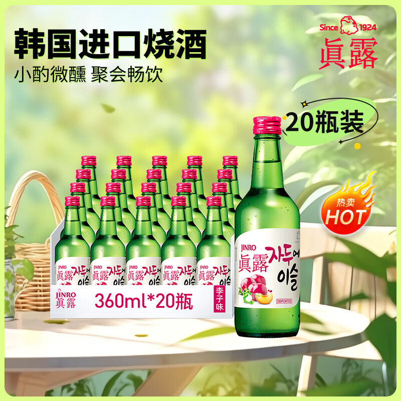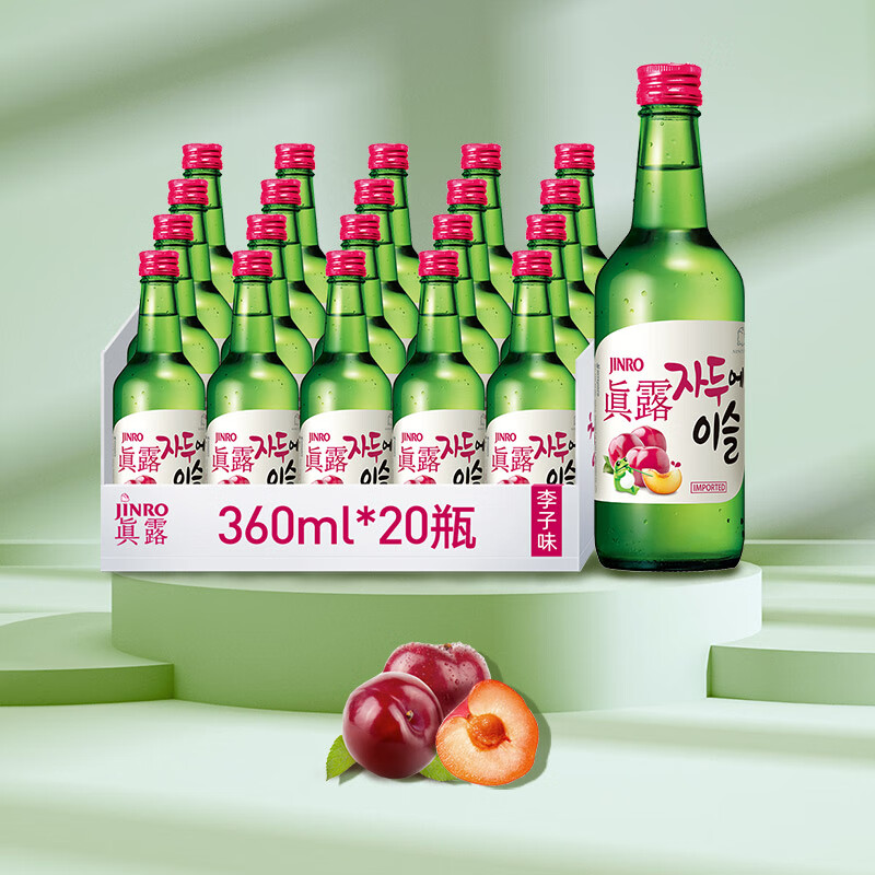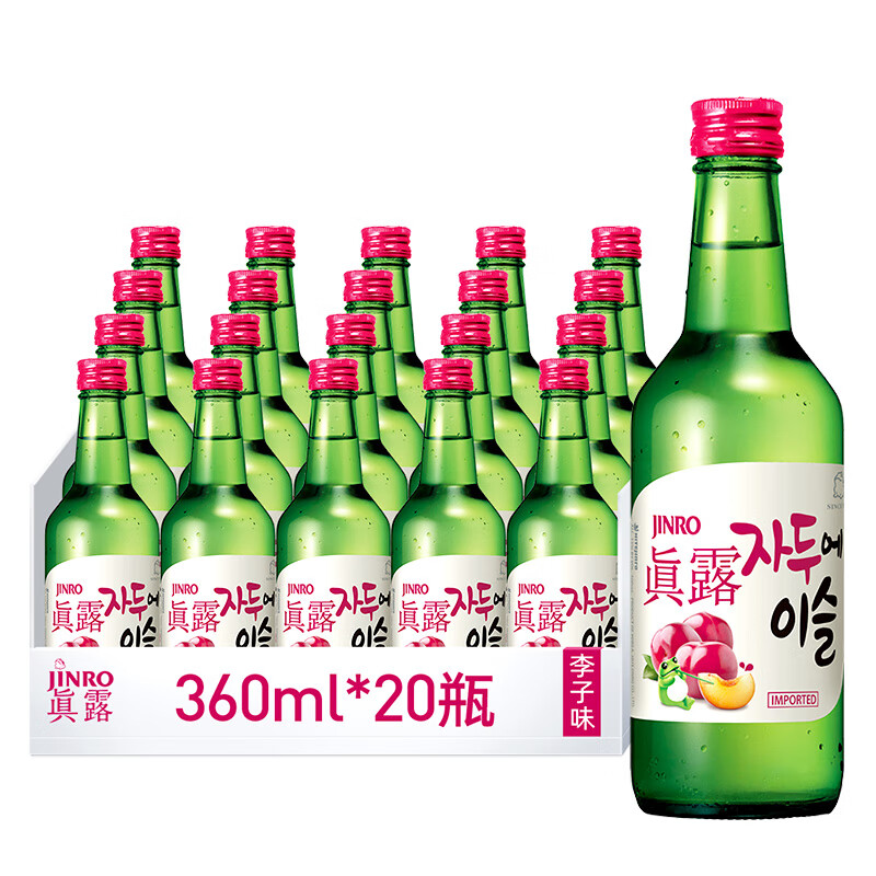 真露韩国果味烧酒13°李子味 360ml*20瓶整箱装微醺果味酒价格:209.00元!