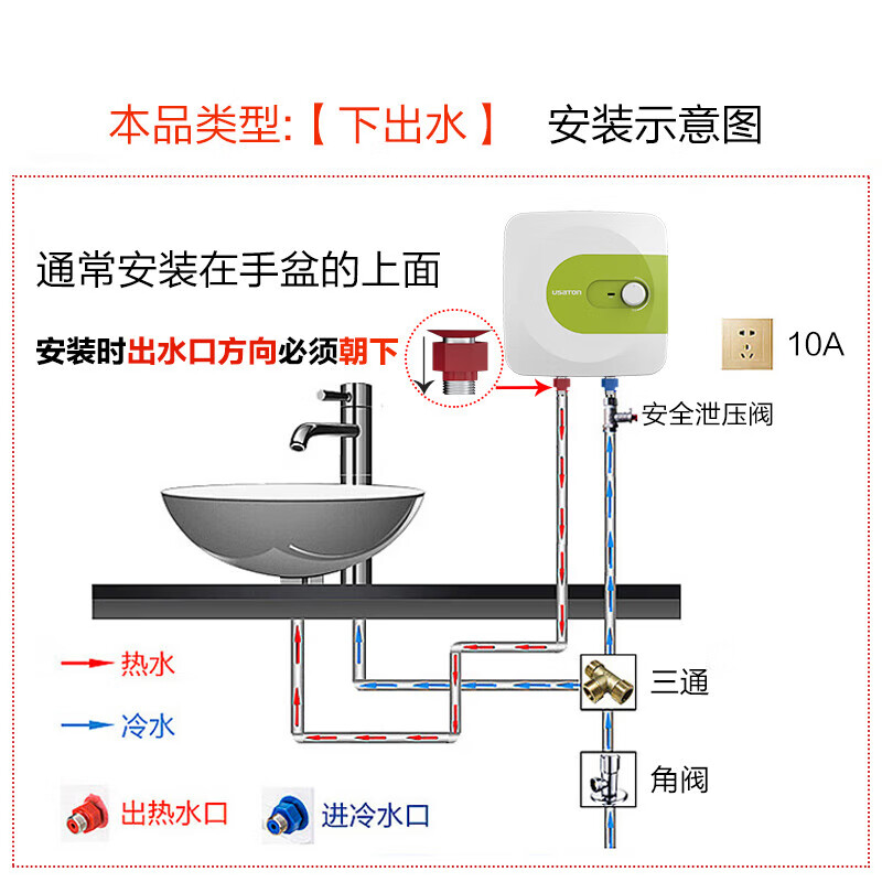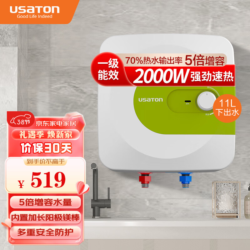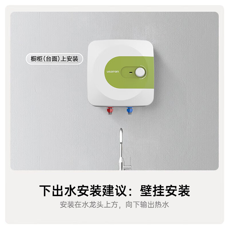 阿诗丹顿(USATON)11升小厨宝速热式厨房储水式电热水器迷你一级能效2000W下出水 KX11-11J20X价格:549.00元!