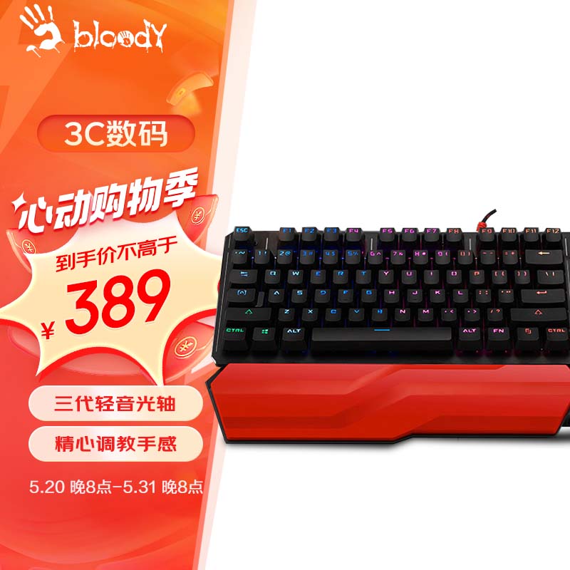 双飞燕(A4TECH)B975轻音版 血手幽灵机械键盘有线三代茶光轴电竞游戏办公笔记本台式电脑RGB背光键盘 黑色价格:389.00元!