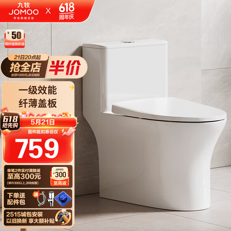 九牧(JOMOO)11457-2-1/41K-1双旋暴风抗菌釉面马桶一级水效家用坐便器缓降价格:1019.00元!