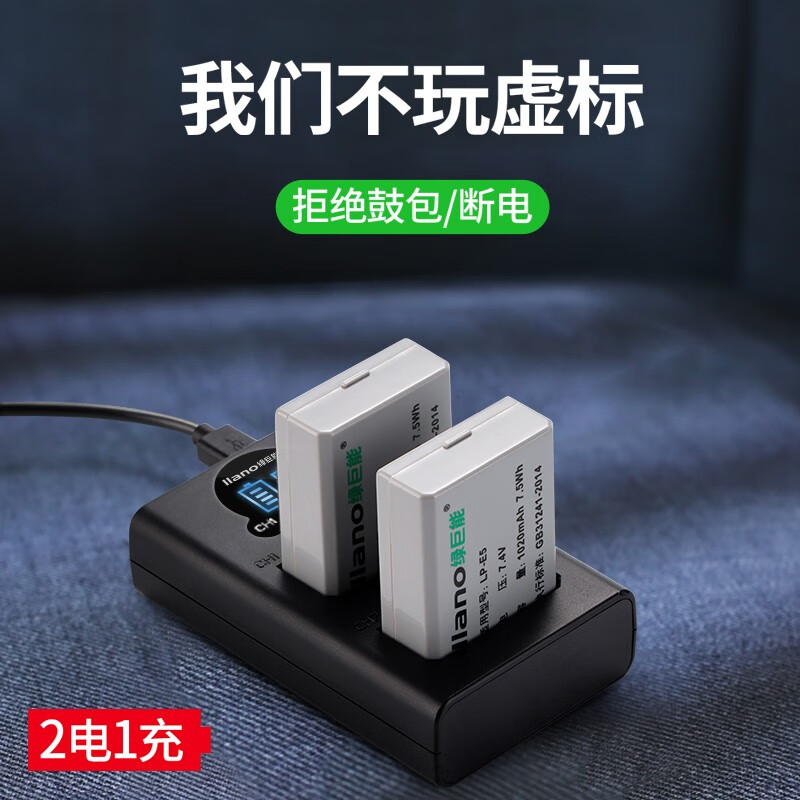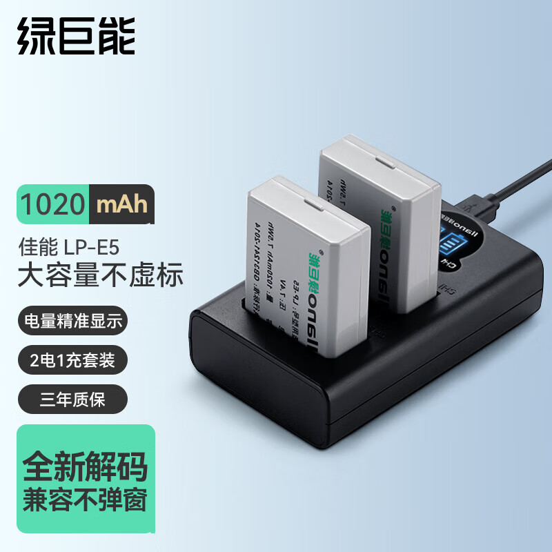 绿巨能(llano)佳能电池 LP-E5相机电池/充电器套装 适用CANON EOS450D 500D 1000D X2 X3等 电池*2充电器*1价格:139.00元!