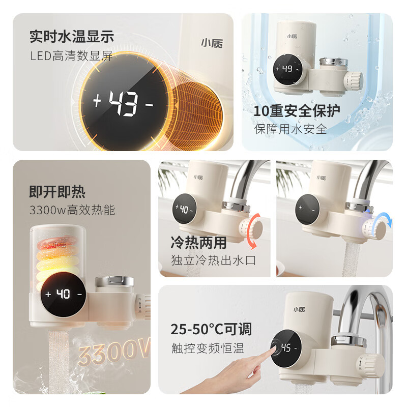 小质电热水龙头即热式免安装家用小厨房宝快速加热自来水热水器恒温变频厨卫两用 【变频恒温款】智能调温+即开即热+智能数显 冷热双出口+漏电保护开关 SR系列价格:228.00元!