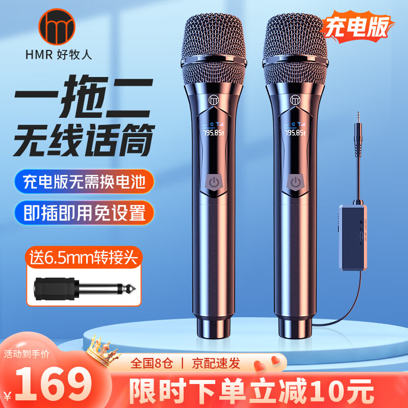 好牧人 麦克风无线U段一拖二 家庭KTV唱歌演讲主持会议专业舞台K歌直播电视音箱音响户外通用话筒 双人版丨一拖二【充电版】防啸叫+无杂音价格:179.00元!