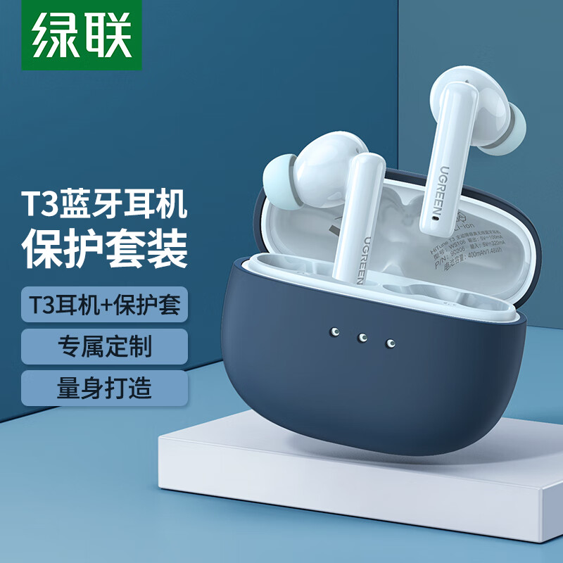 绿联HiTune T3无线蓝牙耳机保护套装 ANC主动降噪音乐耳机 通用苹果华为小米手机 90598+90751价格:183.00元!