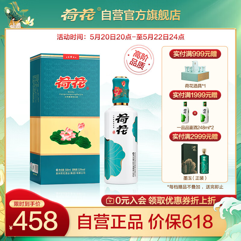 荷花上品荷花 酱香型白酒53度500ml*1瓶 单瓶装 纯粮酿造 大曲坤沙价格:539.00元!