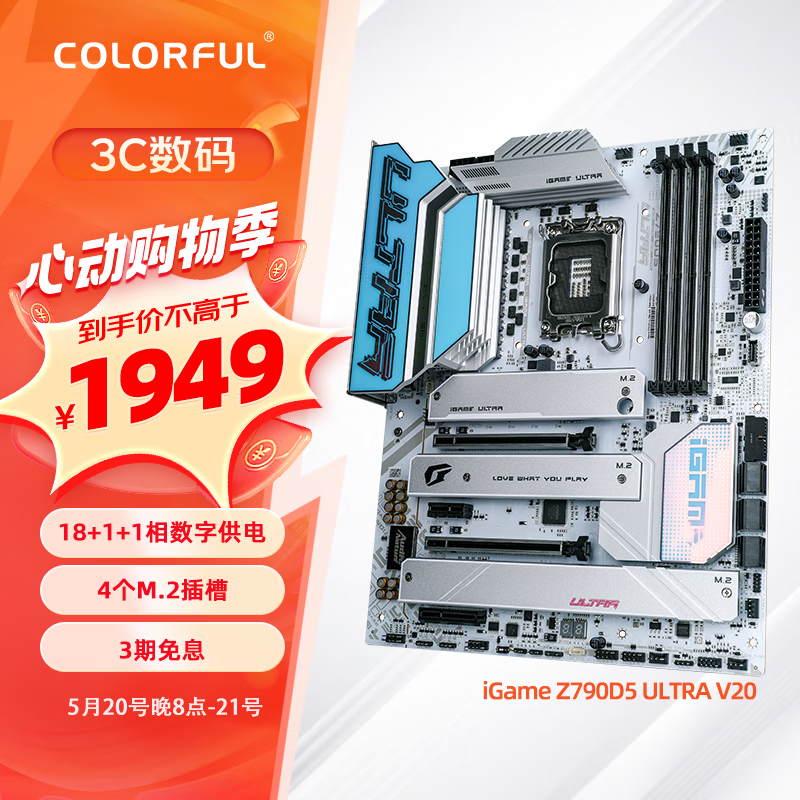 七彩虹(Colorful)iGame Z790D5 ULTRA V20 DDR5主板 支持14900K/14700K(Intel Z790/LGA 1700)价格:1949.00元!