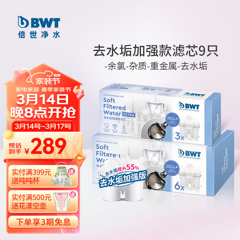 倍世(BWT) 欧洲原装进口第4代去水垢加强款滤芯 过滤净水壶滤水净水器滤芯去垢力提升55% 增强款9只装价格:399.00元!