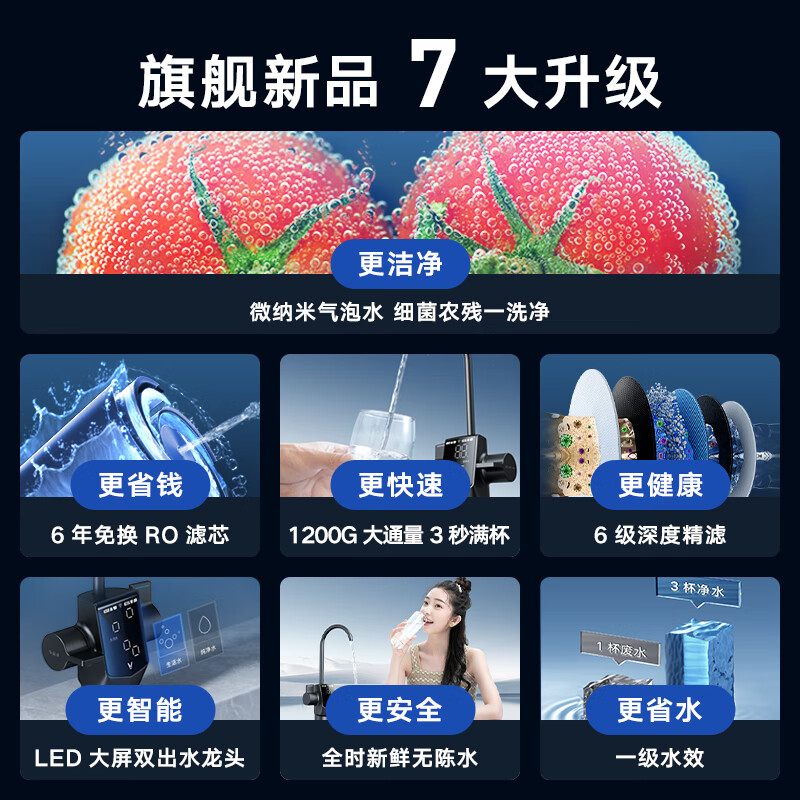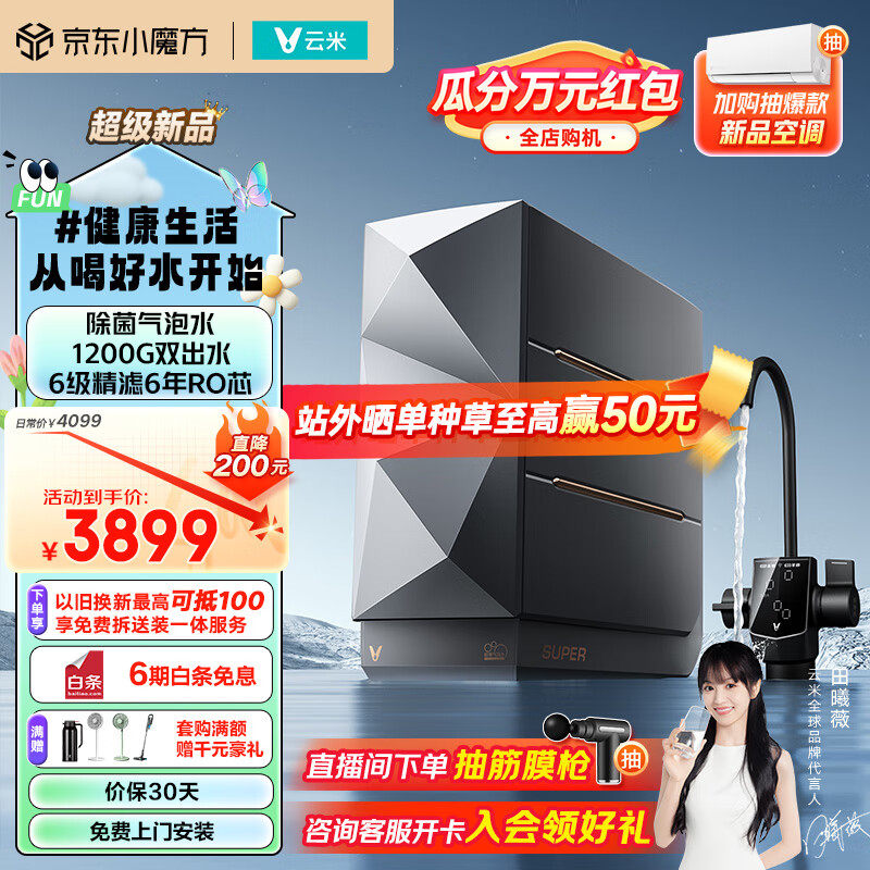 云米(VIOMI)净水器家用1200G厨下式直饮机净水机ro反渗透纯水机除菌去农残自来水过滤器超微气泡Super2Max价格:3899.00元!