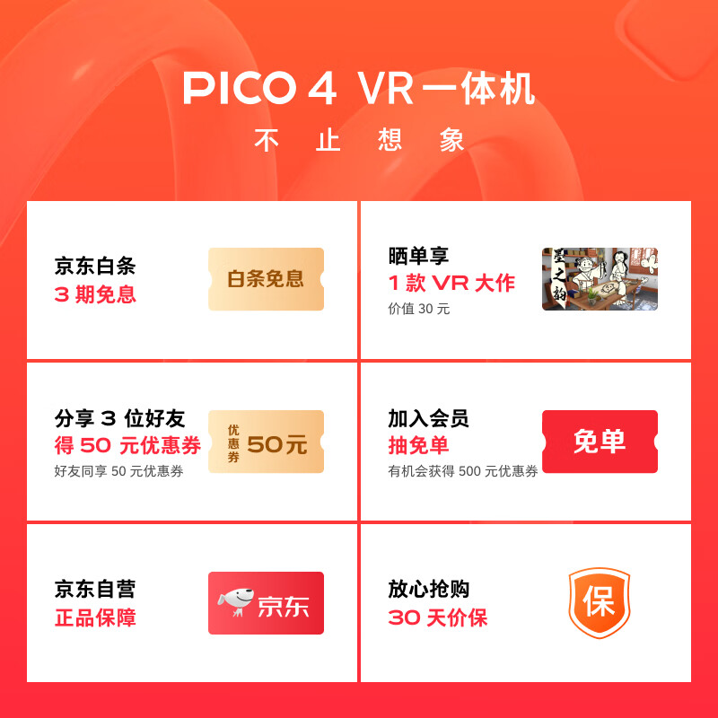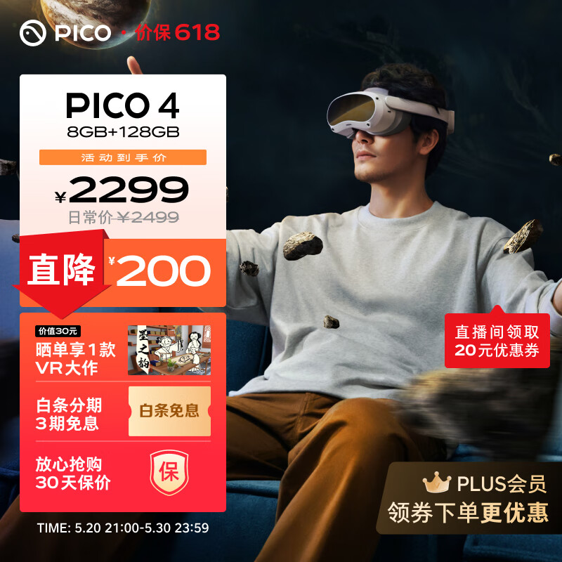 PICO抖音集团旗下XR品牌PICO 4 VR 一体机 8+128G VR眼镜 空间计算AR观影智能头显游戏机串流非quest3价格:2299.00元!